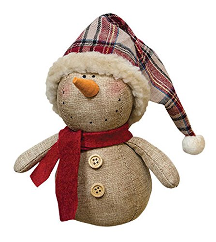 Rustic Stuffed Fabric Snowman with Plaid Santa Hat Country Christmas Decor