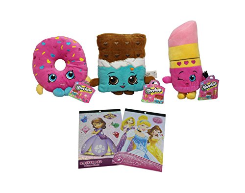 -. Feature : Official Shopkins 6" Deluxe Plush Set of 3 / Shopkins Plush Include: D'Lish Donut, Lippy Lips, and Cheeky Chocolate / Shopkins Your adorable and favorite characters in super soft plush / One of the Disney P.R.Incess Stickers Pads(Disney P.R.Incess/Sofia the First) 4 Sheets Over 200 Stickers / Add Shopkins Plush to your Collections
