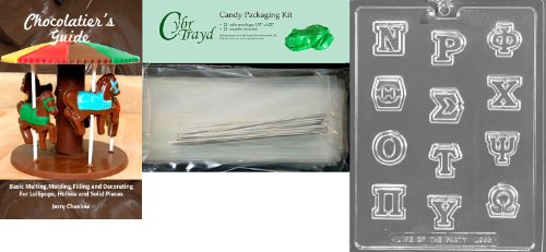 Cybrtrayd Mdk25SBk-L055 Greek Letters Nu Through Omega Chocolate Candy Mold with Packaging Bundle, Includes 25 Cello Bags and 25 Silver Twist Ties