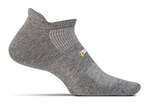 Feetures Unisex High Performance Cushion No Show Tab Socks,Heather Gray,Large