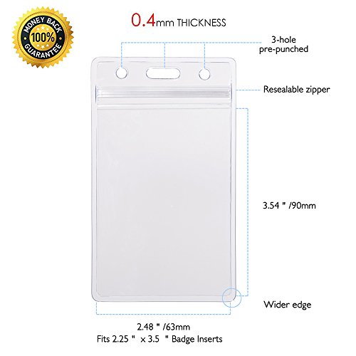 KEYLION 10 Heavy Duty ID Card Badge Holder Clear Vertical Vinyl PVC with Waterproof Type Resealable Zip, Plastic Single Layer Thickness 0.4mm Thicker 60% than Standard 0.25mm