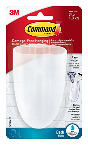 Command Razor Holder, Clear Frosted, 1-Holder, 1-Medium Water-Resistant Strip (BATH16-ES)