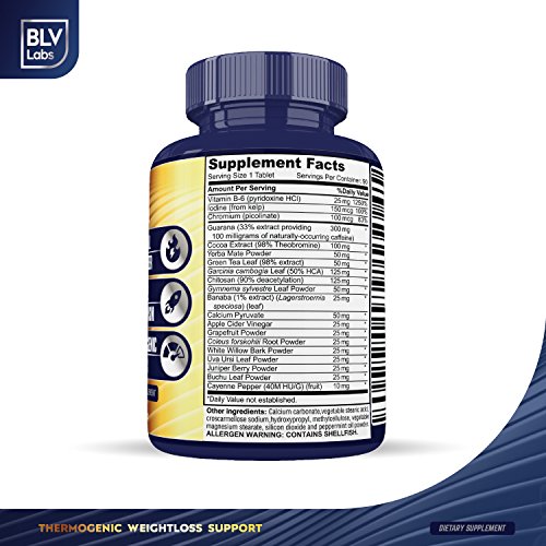 -. Title : Thermogenic Fat Burner by BLV Labs, Weightloss Supplement for Women and Men, Appetite Suppressant With Green Tea Extract, Garcinia Cambogia, Yerba Mate, 90 Weightloss Pills for Fat Burning