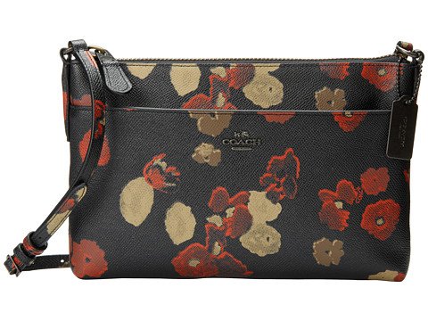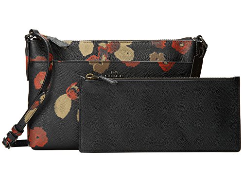 COACH FLORAL EMBOSSED LEATHER SWINGPACK WITH POP-UP POUCH IN BLACK / MULTICOLOR 52478