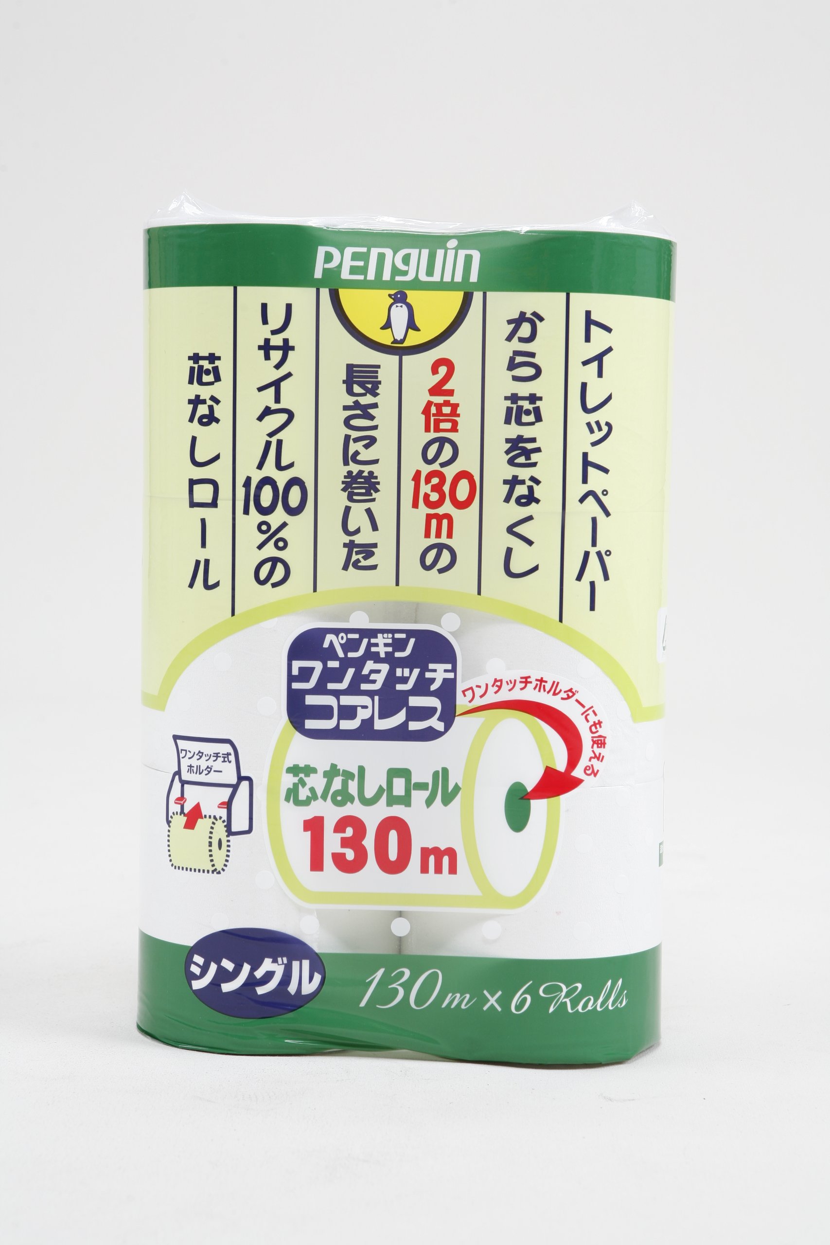 It is a coreless roll whose length of winding is 130 meters and the replacement frequency and the space of the shopping pool are halved.