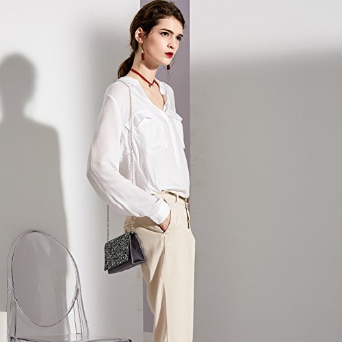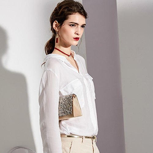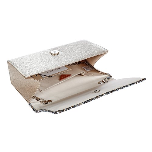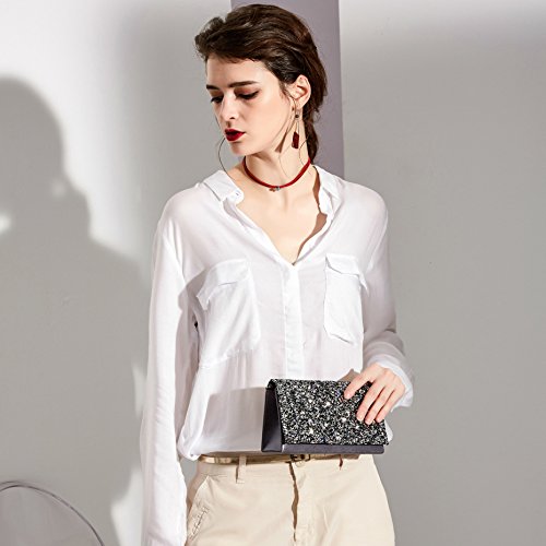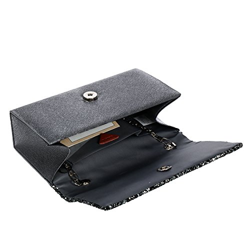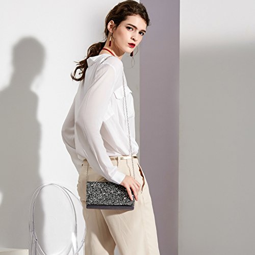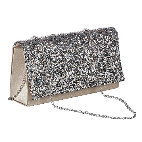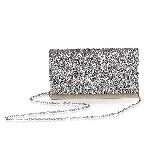 Description: Our nice handbag is a perfect blend of party and professional looks. Elegant evening clutch bag covered in sparkling sequins,3 style in 1 bag (shoulder, clutch, purse) handbag . Interior has a satin lining and one side pocket. Inside can easily fit a cell phone, wallet, compact mirror, lip gloss, and a pack of gum. Conveniently, you can spend the night hands free with the detachable silver chain that is included.