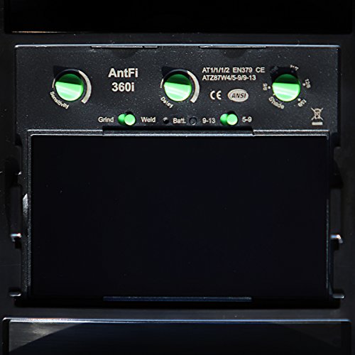 Antra AH7-360-7311 Solar Power Auto Darkening Welding Helmet with AntFi X60-3 Wide Shade Range 4/5-9/9-13 with Grinding Feature Extra lens covers Good for TIG MMA MIG Plasma