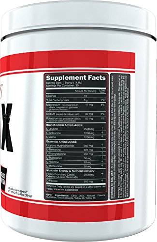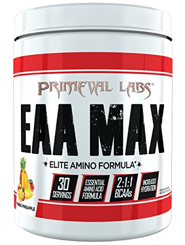 EAA MAX Primeval Labs fans have been clamoring for a comprehensive amino acid supplement for years now, but truth be told, developing the perfect profile (and flavor) is no small feat. Sure, it'd be easy to just pump out some underdosed BCAA-only supplement, but that doesn't provide everything your body needs to effectively synthesize muscle tissue. But, that's not good enough for us! The long wait is over now as we've launched EAA Max -- the best tasting, most effective, and efficaciously-dosed amino acid supplement on the market. EAA Max provides a full essential amino acid profile PLUS a full serving of 2:1:1 BCAAs for maximal muscle growth, repair and recovery! Why Choose EAA Max? Typical amino acid supplements only contain the three branch chain amino acids (BCAAs) consisting of Leucine, Isoleucine, and Valine. While there's nothing wrong with BCAA supplements, they're simply not the full spectrum of amino acids needed for proper protein synthesis and repair. Think of it like playing a game of football with only 6 of the 11 players -- it just won't work! Essential Amino Acids (EAA's), on the other hand, contain the entire range of amino acids your body demands when it needs to build new tissue. EAAs are called "essential" because the body cannot synthesize them on its own. You MUST obtain them through food or supplements. Furthermore, most individuals aren't eating a diverse enough diet, and therefore miss out on crucial EAA-rich foods. Plus, some may be eating a well-balanced diet, but may not be absorbing the nutrients properly. Either way, the end result is EAA deficiency and lack of gains! Benefits of EAA Max - Increases muscle protein synthesis - Prevents muscle protein breakdown - Enhances performance - Supports hydration - Improves metabolism - Combats hunger - Speeds recovery - Supports muscle growth - Enhance mitochondrial function - Ideal for training AND non-training days!