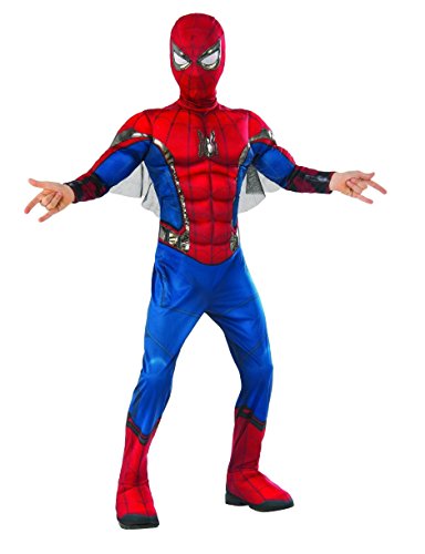 -. Brand : Rubie's -. Color : Red Blue -. Department : boys -. Feature : Heighten your "Spidey-Sense", and watch out for the Green Goblin with this Spiderman muscle costume! / Costume includes Padded jumpsuit includes boot tops and mask / 100% Polyester -. Label : Rubie's -. Manufacturer : Rubie's -. MPN : 640452 -. PartNumber : 640452 -. ProductGroup : Apparel -. ProductTypeName : CHILDRENS_COSTUME -. Publisher : Rubie's -. Studio : Rubie's -. Title : Rubie's Boys Deluxe Spider-man Homecoming Muscle Costume with Metallic Accents