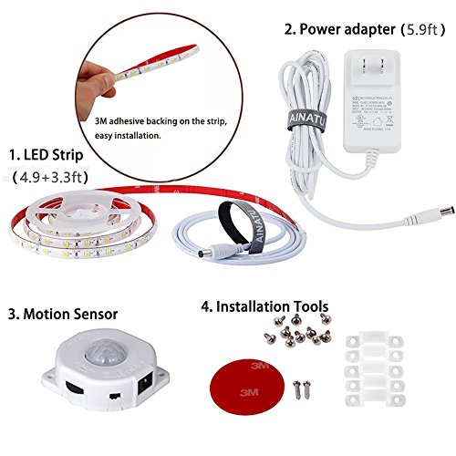 Motion Activated Bed Light - AINATU Under Cabinet Lighting, Bed Light with Automatic Shut Off Timer for Under Cabinet, Hallway, Wardrobe, and More (Warm White)