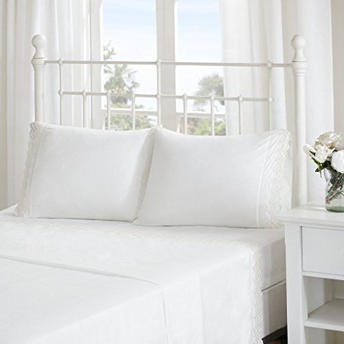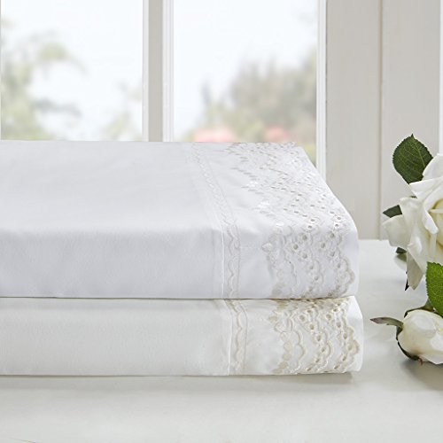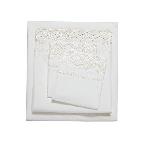 Warm and welcoming, the Madison Park Essentials Scalloped Eyelet Embroidered Sheet Set creates a cozy and natural feeling in your bedroom. Scalloped lace embroidery is showcased around the hem of the flat sheet and pillowcases for a charming and graceful look. Made from ultra-soft microfiber, these sheet sets are exceptionally comfortable and machine washable for easy care. Set includes: 1 Flat Sheet, 1 Fitted Sheet, and 4 Pillowcases. The fitted sheet fits up to 16" mattress.