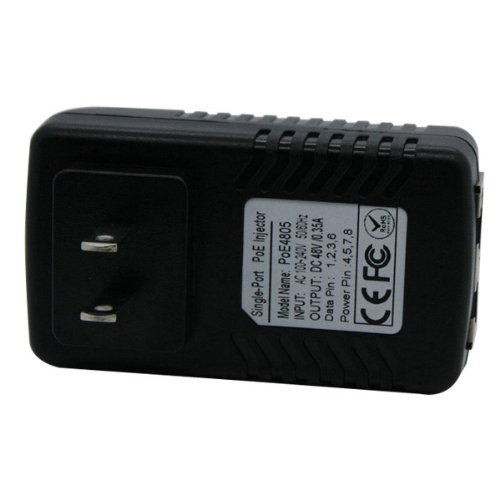 -. Feature : Eliminate the needs to place Ethernet-enabled device near the power outlet IEEE 802.3af PoE standard (2003) / Category 5 pins: Pins 1 & 2, 3&6 for data. Pins 4 & 5, 7&8 for power Ethernet Cable: Data rate: 10/100Mbps TIA/EIA5888-2. Connector: RJ-45 Operating Temperature: 0 Degree to 50 Storage Temperature: -40 Degree to 70 Degree / Operating Humidity: 10% to 80% RH Storage Humidity: 5% to 90% RH Certification: FCC/CE Input Voltage: 100V~ 240V AC. 0.4A Output Voltage: 48V DC. 0.4A / Package Content: PoE DC Injector