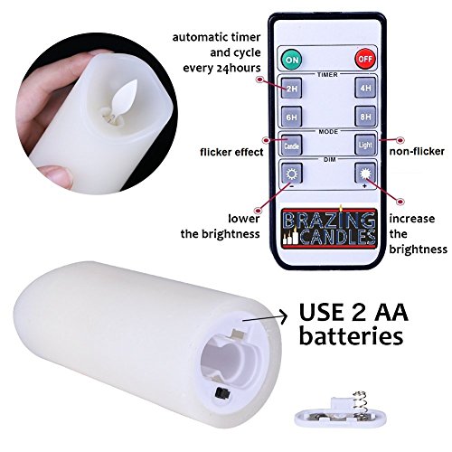 BRAZING CANDLES , 9 pc LED Candle Set, Ivory, 2 inch diam, Ivory w/10 key remote control