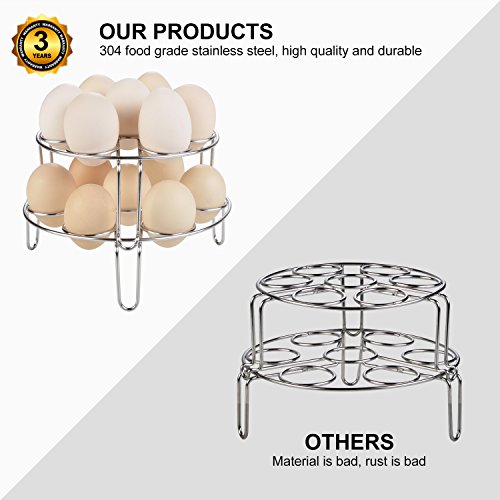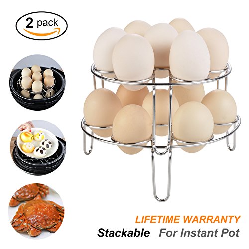 Stackable Egg Steamer Rack for Instant Pot and Pressure Cooker Cooking Vegetable Steaming Holder Rack Stand Set, 2Pack This rack save time by just setting the eggs on it and leave the rest to instant pot. You don't have to stand by the stove when boiling the eggs and worry about some being cracked.