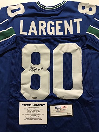 Autographed/Signed Steve Largent "HOF 95" Seattle Seahawks Blue Football Jersey Tristar COA