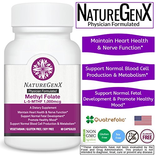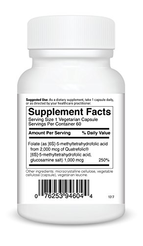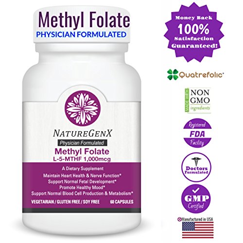 Methyl Folate?L-5-MTHF (or (6S)-5 Methylfolate)? 1MG - The most stable, bioavailable and active form of folate Quatrefolic® from Gnosis is a new generation of folic acid. It represents a breakthrough in folate supplementation with regard to an active, stable, and highly bioavailable form when compared to folic acid and the methyl derivative folate. Quatrefolic® provides folate in the (6S)-5-methyltetrahydrofolate form which is easily utilized and stored in the body. Quatrefolic® uses a glucosamine salt which has been proven in both human animal studies to have greater bioavailability over calcium salt versions. Methyl Folate from NatureGenx? uses the Quatrefolic® brand folate?because it bypasses the need for enzymatic activation making it readily?available to be used by the body. Terms often used for methylfolate are: Methylfolate L-MTHF L-Methylfolate L-Methylfolate Calcium D-Methylfolate D-5-Methylfolate Levomefolic Acid Metafolin 5-MTHF 5-Methylfolate 5-Methyltetrahydrofolate L-5-MTHF L-5-Methyltetrahydrofolate 6(S)-5-MTHF 6(S)-5-Methyltetrahydrofolate 6(R)-5-MTHF 6(R)-5-methyltetrahydrofolate Quatrefolic *These statements have not been evaluated by the Food and Drug Administration. This product is not intended to diagnose, treat, cure or prevent any disease. 0 |