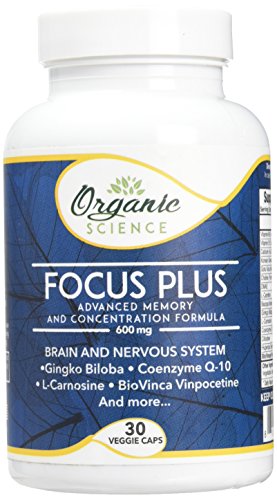 Organic Science Focus Formula 600 mg Gingko Biloba Coenzyme Q-10 L-Carnosine BioVinca Vinpocetine And more... 30 Veggie Caps Dietary Supplement