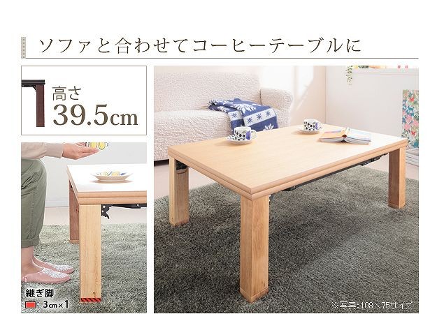 商品について:楢天然木の木目が美しい日本製のこたつ。でっぱりのないフラットヒーターなので、足元は広々。ムラなく隅々まで均一に暖まります。見た目も普通のローテーブルのよう♪ヒーターを気にせず1年を通してお使いいただるデザインです。