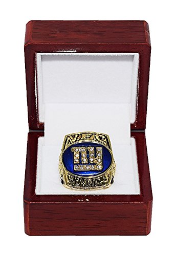 NEW YORK GIANTS (Ramos McDonald) 2000 NFC WORLD CHAMPIONS Vintage Rare & Collectible High-Quality Replica NFL Football Gold Championship Ring with Cherrywood Display Box
