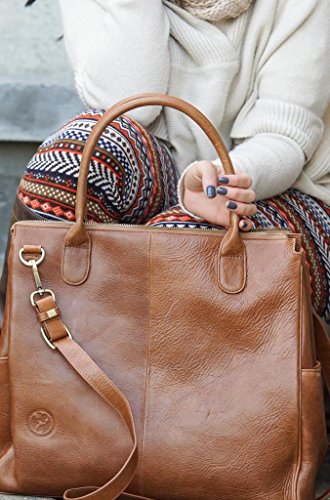 - Title : Oemi Leather Diaper Bag ~ 5 Interior Pockets ~ Deluxe Change Pad ~ Wide, Removable Shoulder Strap - Cognac