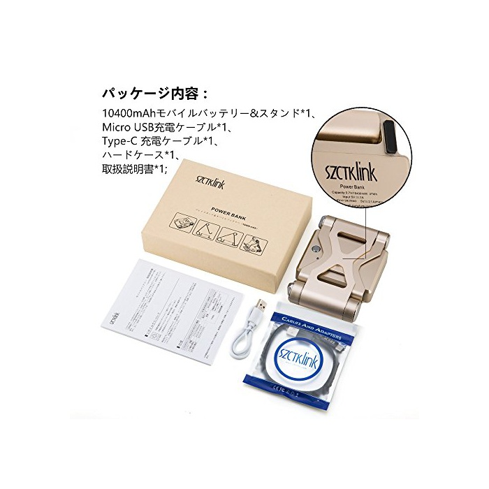 팩키지 내용:szctklink 10400 모바일 배터리&스탠드*1,Micro USB충전 케이블*1,Type-C 충전 케이블*1,취급 설명서*1; ※메이커 보증:12개월간 안심 보증※만일,문제가 있으면 연락을 받을 수 있으면 신속하게 대응 합니다.고객에 만족 주시는 바와 같이(하도록) 힘껏(고작) 노력합니다;