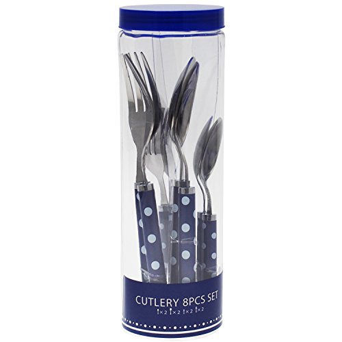 -. Title : 不二貿易 カトラリー 8本セット ドット ネイビー 24584