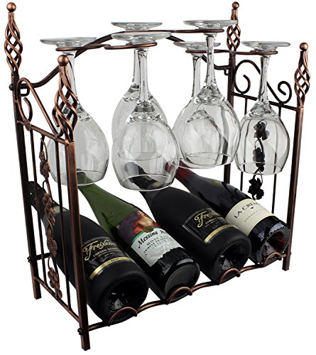 Grapevine Design 4 Wine Bottle Storage Rack Bronze Metal with Wine Glass Holders by bogo Brands