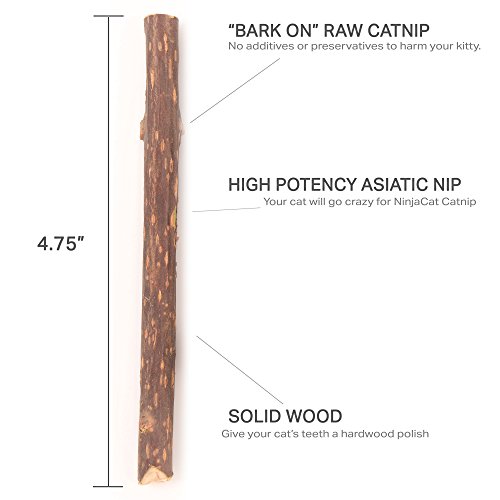 - Feature : RECOMMENDED USE - Do not exceed 30 minutes of use at once. Allow 1 hour in between uses. Extreme usage may cause drooling, munchies, and unexpected giggling. / NATURAL & UNPROCESSED - NinjaCat Asiatic Silver Vine is in its unprocessed, raw form with no additives or preservatives. Because... organic. #meow / HIGH POTENCY ASIATIC SILVERVINE NIP - This raw form of NinjaCat Asiatic Silver Vine is a higher potency than ordinary kitty cannabis and allows more enjoyment for pets. / HARDWOOD TEETH CLEANING - Natural, exfoliating bark on Asiatic Silver Vine gives your buddy a trip to the dentist with each use. / NIP SAVER PACKETS - NinjaCat Silver Vine is packaged in fresh saver packets to keep it tasty.