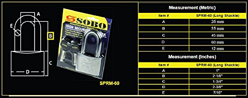 FJM Security SPRM60-CR 2" Heavy Duty Long Shackle Padlock With Chrome Plating, Keyed Different