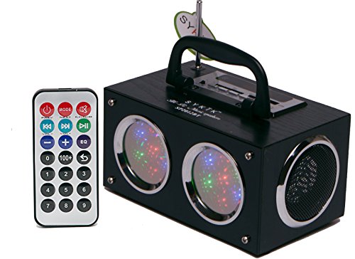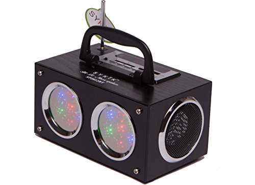 -. Binding : Wireless Phone Accessory -. Brand : Sykik -. EAN : 0702382666514 -. Feature : New easy to connect wireless Bluetooth connection / Powerful 6w RMS with light show / SD, usb, aux in slots with FM radio and led digital display / Built-in rechargeable battery and external battery operation / Headphone jack and full function remote control -. Label : Sykik -. Manufacturer : Sykik -. Model : SP2012BT -. MPN : SP2012BT -. PackageQuantity : 1 -. PartNumber : SP2012BT -. ProductGroup : Wireless -. ProductTypeName : PORTABLE_AUDIO -. Publisher : Sykik -. Studio : Sykik -. Title : Sykik Mini Bluetooth Boom Box with Dancing Light Show -. UPC : 702382666514