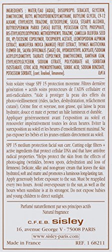 Studio : SISLEY Publisher : SISLEY Binding : Health and Beauty Product Description A delicate, non-greasy cream with a broad-spectrum sun block effect Combines cutting-edge UVA UVB filters with Edelweiss extract Defends skin from the damaging sun rays to preserve skin's hydrolipidic film Plus anti-oxidant ingredient Vitamin E to defy photo-aging Rich moisturizing ingredients like Shea Butter, Camellia oil Mango extract replenish moisture Naturally scented with essential oils of Sage Marjoram Leaves skin supple, matte healthy looking Water-resistant, non-comedogenic 0