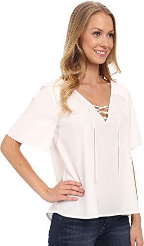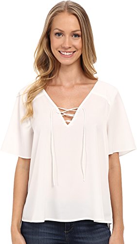 Product DescriptionSilk flutter short sleeve lace up Kate blouse in white0