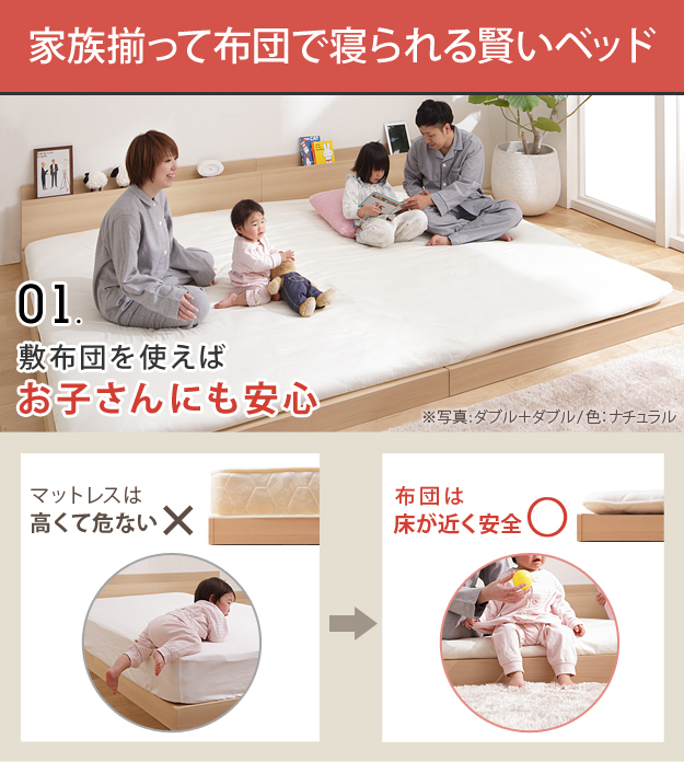 ●連結ベッド ベッドフレーム ロースタイル スリムヘッドボード 2口コンセント 敷布団 敷きふとん 抗菌防臭布団 防ダニ布団 防ダニ加工 吸汗速乾 軽い 厚い 日本製