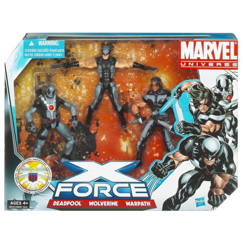 -. Binding : Toy -. Brand : Marvel -. EAN : 0653569567141 -. Feature : Marvel Universe 3 3/4" Super Hero Team Pack action figures from Hasbro / This 3-pack includes Deadpool & Wolverine & Warpath / For Ages 4 & Up -. IsAdultProduct : 0 -. Label : Hasbro -. LegalDisclaimer : IN NO EVENT, REGARDLESS OF CAUSE, SHALL WEST ROAD CREATIVE, LLC BE LIABLE FOR ANY INDIRECT, SPECIAL, INCIDENTAL, PUNITIVE OR CONSEQUENTIAL DAMAGES OF ANY KIND, WHETHER ARISING UNDER BREACH OF CONTRACT, TORT (INCLUDING NEGLIGENCE), STRICT LIABILITY OR OTHERWISE, AND WHETHER BASED ON THIS AGREEMENT OR OTHERWISE, EVEN IF ADVISED OF THE POSSIBILITY OF SUCH DAMAGES. -. Manufacturer : Hasbro -. Model : 29147 -. MPN : 29147 -. PackageQuantity : 1 -. PartNumber : 29147 -. ProductGroup : Toy -. ProductTypeName : TOYS_AND_GAMES -. Publisher : Hasbro -. SKU : H28837-29147 -. Studio : Hasbro -. Title : Marvel Universe Super Hero Team Packs X Force -. UPC : 653569567141