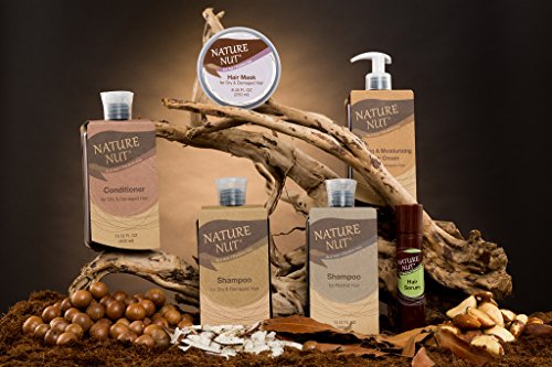 Nature Nut Products Line The Nature Nut product line was developed based on a combination of natural oils derived from five nuts, customized specifically for each product. The extensive in-house research was conducted to derive unique synergetic formulations that maximize and greatly expand the contribution of each individual nut. Deeply enriched with Shea butter and oils from Argan, Macadamia, Coconut, and Brazil nuts, Nature Nut products deliver powerful hydration to smooth and fortify hair fibers and moisturize dry skin. This combination of nuts is rich in antioxidants, vitamins, and essential fatty acids that nourish the hair shaft, enhancing its flexibility and vitality. Vitamins A and E and the antioxidants in these nuts make hair appear healthier.