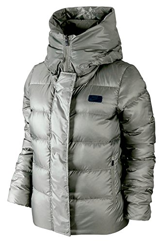 Polyester ripstop shell stands up to cold weather Lightweight down insulation is warm and cozy Full-coverage hood is a great fit whether your hair is up or down Side zip pockets and chest pocket with interior media-cord port for versatile storage Snap storm flap and DWR (durable, water-repellent) finish offer enhanced weather protectionFeature