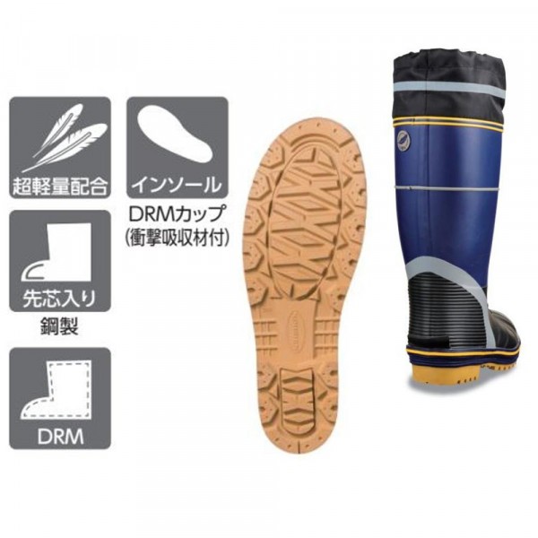 履口にカバーがついているため雪や冷気等が入りにくく、靴内部を快適に保ちます。つま先部分には鋼製先芯入り。反射テープ付きなので夜間作業にもピッタリです。