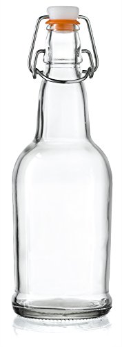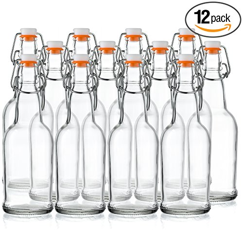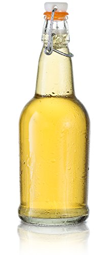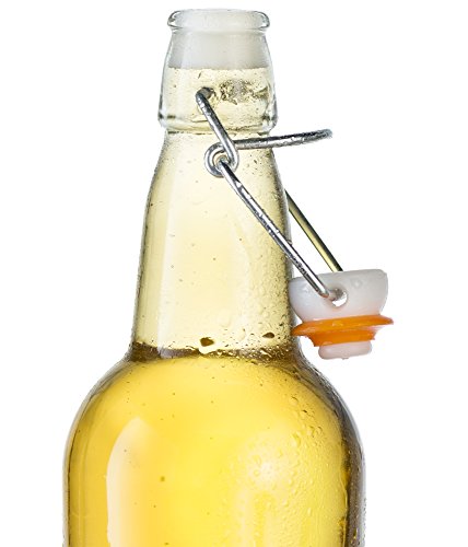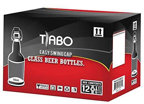 Home Brewing Glass Beer Bottle with Easy Wire Swing Cap & Airtight Rubber Seal - 16oz - Case of 12 - by Tiabo