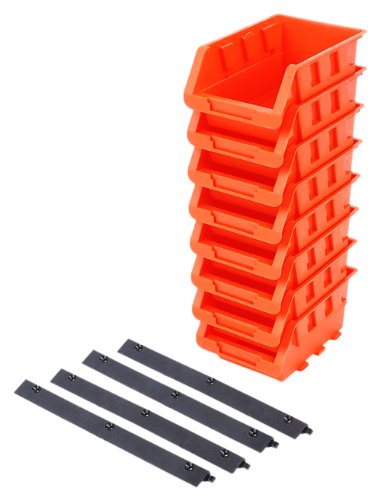 Tactix 320604 Plastic Tray Bin Set, Black/Orange, 8-Piece