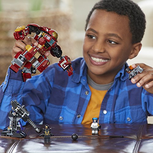 -. Feature : Build the posable Hulkbuster, featuring an opening minifigure cockpit and bashing arm function, gun turret with a ball shooter and compartment containing the Infinity Stone element! / This Marvel toy includes 4 Infinity War figures: a Bruce Banner figure, Falcon figure, Proxima Midnight figure with a spear and an Outrider figure. / Hulkbuster toy measures over 5" (14cm) high, 2" (7cm) long and 6" (16cm) wide;Gun turret measures over 3" (8cm) high, 4" (11cm) wide and 1" (5cm) deep / 375 pieces - Avengers: Infinity War movie toy for boys and girls between the ages of 7 and 14;L.E.G.O Marvel Super Heroes playsets are compatible with all L.E.G.O building sets for creative building / Recreate thrilling battles in Wakanda from the Marvel Super Heroes Avengers: Infinity War movie with this action-packed builders' toy