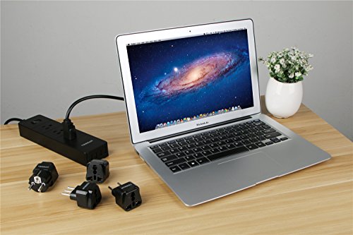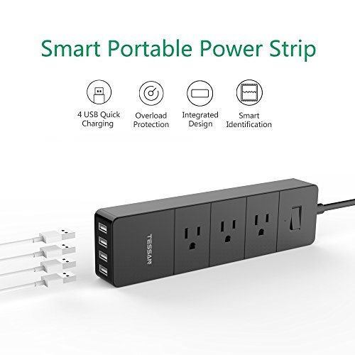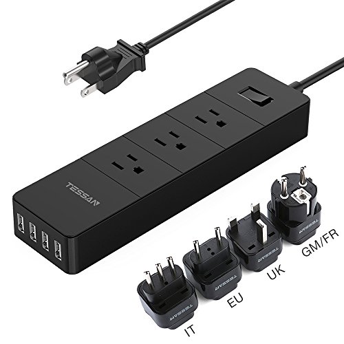 TESSAN 3 Outlet Surge Protector Power Strip with 4 USB Ports(20W) Charging Station 5 Ft Cord + Travel Plug Adapter Set(UK/Italy/HK/Germany/France)-Black