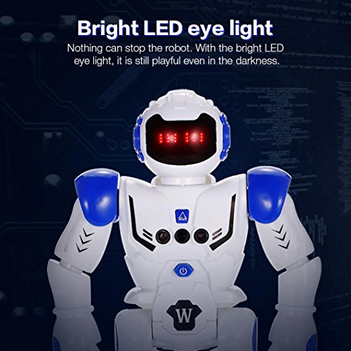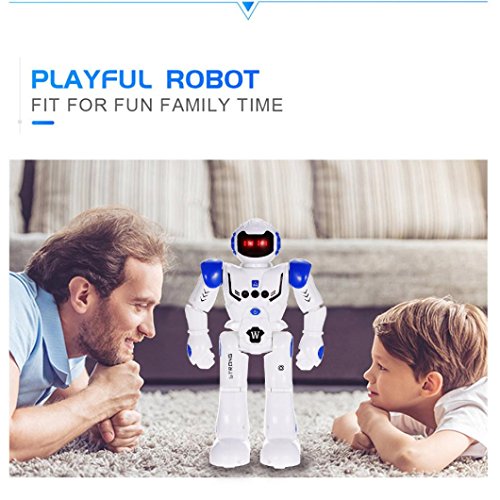 -. Feature : ♥ It can slide forward/backward, slide forward/backward, turn left/right. / ♥ The robot can sing and dance to entertain you. / ♥ The robot can be programmed to carry out movements as you create. / ♥ Gesture control: using simple gestures, the robot can react to your gestures with basic movements, along with sound effects. / ♥ With the rotating wheel at the bottom, it will avoid obstacle without tripped.