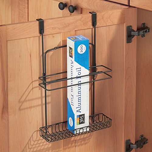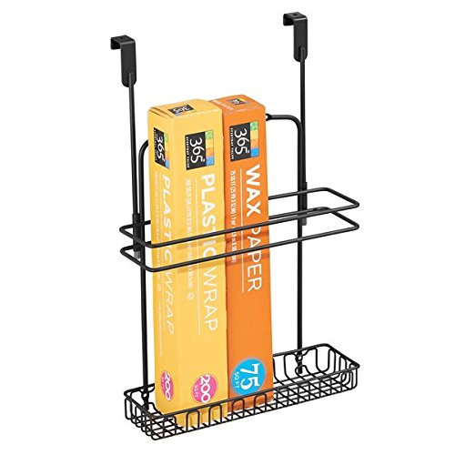 mDesign Over Cabinet Kitchen Storage Organizer for Aluminum Foil, Sandwich Bags, Cleaning Supplies - Wall Mount, Matte Black