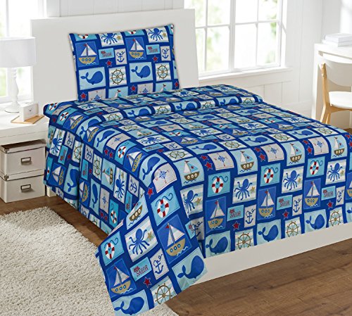 Twin 3 Pieces Printed Kids Sheets Bed Cover with Pillow Case with Modern Designs (SAILOR)
