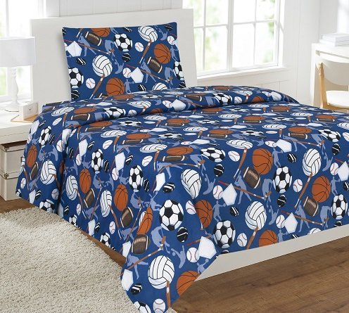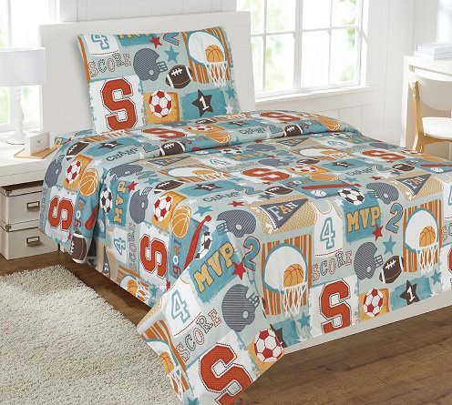 Twin 3 Pieces Printed Kids Sheets Bed Cover with Pillow Case with Modern Designs (Sport Champ)