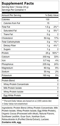 Protein Blend is a precise blend of four proteins designed to help you build and maintain muscle, prevent muscle breakdown and promote satiety. Each protein is digested and absorbed at a different rate, creating a sustained-release effect that keeps you satisfied for hours. All our whey and milk proteins are from cows not given rBGH/rBST (artificial growth hormone)**. Whey Protein - Fast Release: About 60% of our protein ingredients are from two types of whey protein. First, we include whey protein isolate (fat-free, lactose-free) which is fast digesting and quickly absorbed by the body. The second type of whey provides naturally-occurring branched-chain amino acids and essential amino acids, which help you build and maintain muscle. Our whey protein undergoes an ultrafiltration process that removes most of the carbs and fat, yet retains its valuable whey protein fractions such as lactalbumin and immunoglobulin that may help support the immune system. Egg White - Medium Release: Egg white is one of the highest quality proteins available. It has an excellent amino acid profile and is a medium-release protein. Because it comes from the egg white, not the egg yolk, it's cholesterol free. Milk Protein Isolate - Slow Release: Milk protein isolate is a medium- to slow-release protein that naturally consists of a blend of about 20% whey protein and 80% casein protein. The naturally-occurring native casein portion forms micelles that digest slowly, creating a sustained flow of amino acids to your body. This helps slow the body's natural process of breaking down muscle for fuel when you haven't eaten in several hours. It may also help satisfy your hunger cravings to prevent overeating. Natural Flavors and Organic Cocoa. No Artificial Sweeteners: Enjoy its low-medium sweetness level from stevia leaf extract. Soy Free - Instantized: It's mildly instantized with a small amount of non-GMO sunflower lecithin, not soy.Feature