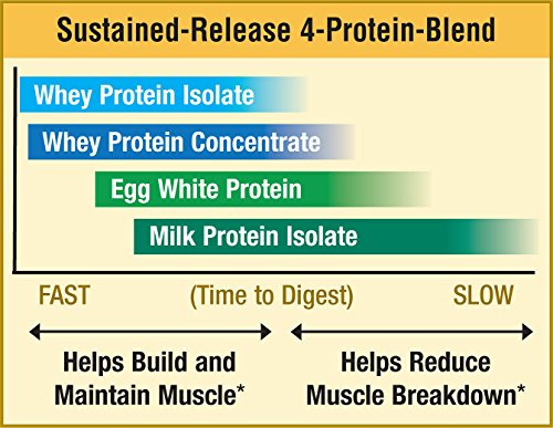 Sustained Release 4-Protein blend to help build muscle, prevent muscle breakdown and promote satiety