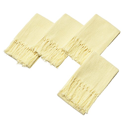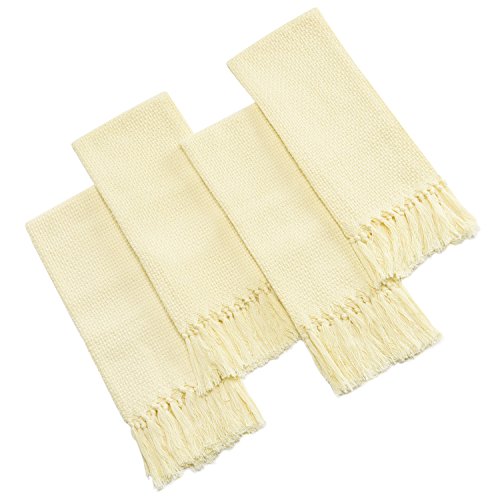 Kitchen Tassels Hand Towels Dish Cloths Set (4 Pack) 100% Pure Cotton Kitchen TasselS Towels Dishcloths Tea Towels (24 X 14 Inch) by Jennice House (Beige)
