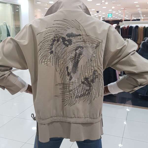 등판의 자수가 포인트인 캐쥬얼 자켓 디자인입니다.