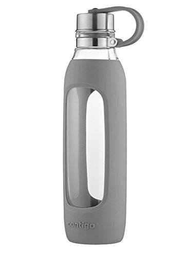 Contigo Purity Glass Water Bottle, 20 oz, Smoke with Silicone Tether